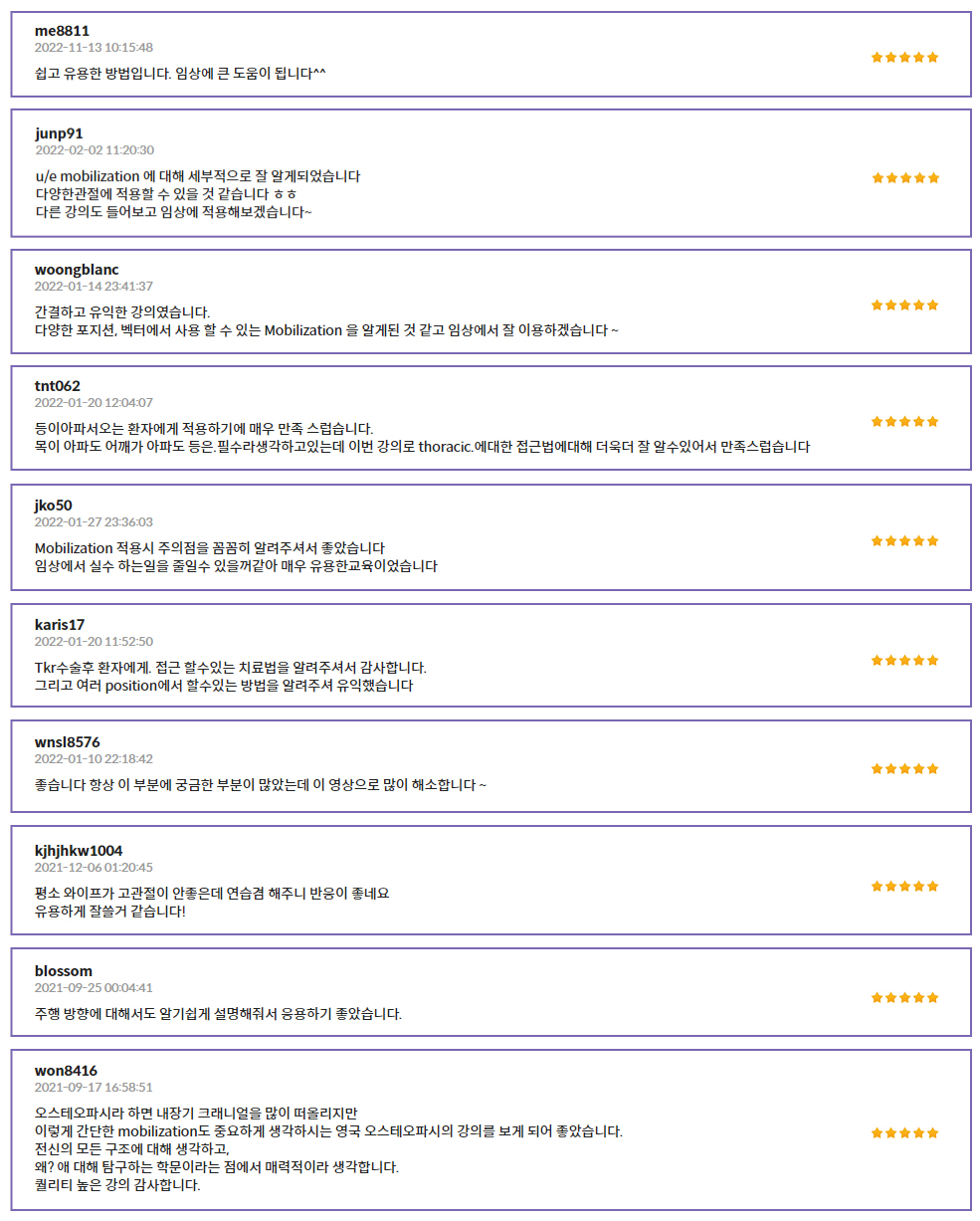 대상자의 신체 구조를 고려한 자세부터 임상가와 대상자의 신체적 차이를 고려한 치료자세까지 다양한 자세별 가동기법을 학습합니다.